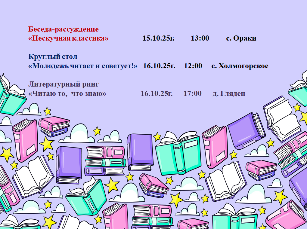 С 11 по 17 октября в библиотеках Шарыповского муниципального округа пройдет Неделя молодежной книги под названием «Молодежь читает и советует». Мы подготовили афишу мероприятий, которые вас точно заинтересуют: книгопутешествие, библио встреча, круглый стол, литературный ринг, акции и информационные часы. Ждем всех, кому интересно! Будет увлекательно!