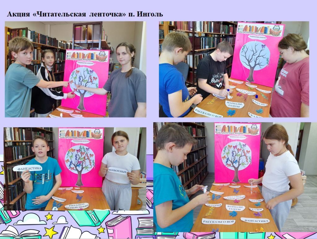 Провести время с интересом и пользой в поселке Инголь позволил библиомикс «Читаем книги круглый год» в рамках Недели молодежной книги «Молодежь читает и советует». Программа была подготовлена для любознательных, увлечённых чтением подростков. В течение дня они вспоминали любимые произведения, сказки, отвечали на вопросы, выполняли задания, участвовали в играх и конкурсах. Особенно запомнились игры «Лото», «Чей это портрет?», «Назови сказку правильно», «Найди автора произведения» и другие. Завершилось мероприятие фотосессией с любимыми книгами из фонда библиотеки.